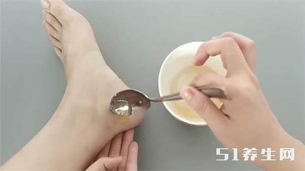 左边脚后跟是刚刚涂抹过蜂蜜和红霉素软膏的,这里可以很明显的看到涂抹过的要比没有涂抹过得滋润很多,也没有那么干燥,右边要明显干燥很多,看起来也非常粗糙。所以将红霉素软膏和蜂蜜涂抹在有干裂的地方,可以达到很好的滋润效果。